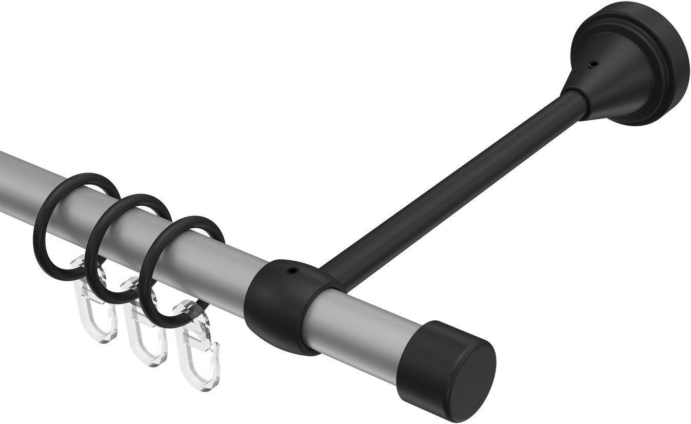 Gardinenstangen aus Metall in 16 mm Ø, 1-läufig, Modell PRIMUS - Lucan Silbergrau / Schwarz