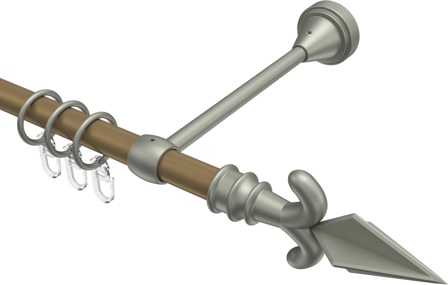 Gardinenstangen aus Metall in 16 mm Ø, 1-läufig, Modell PRIMUS - Matteo Gold matt / Chrom matt