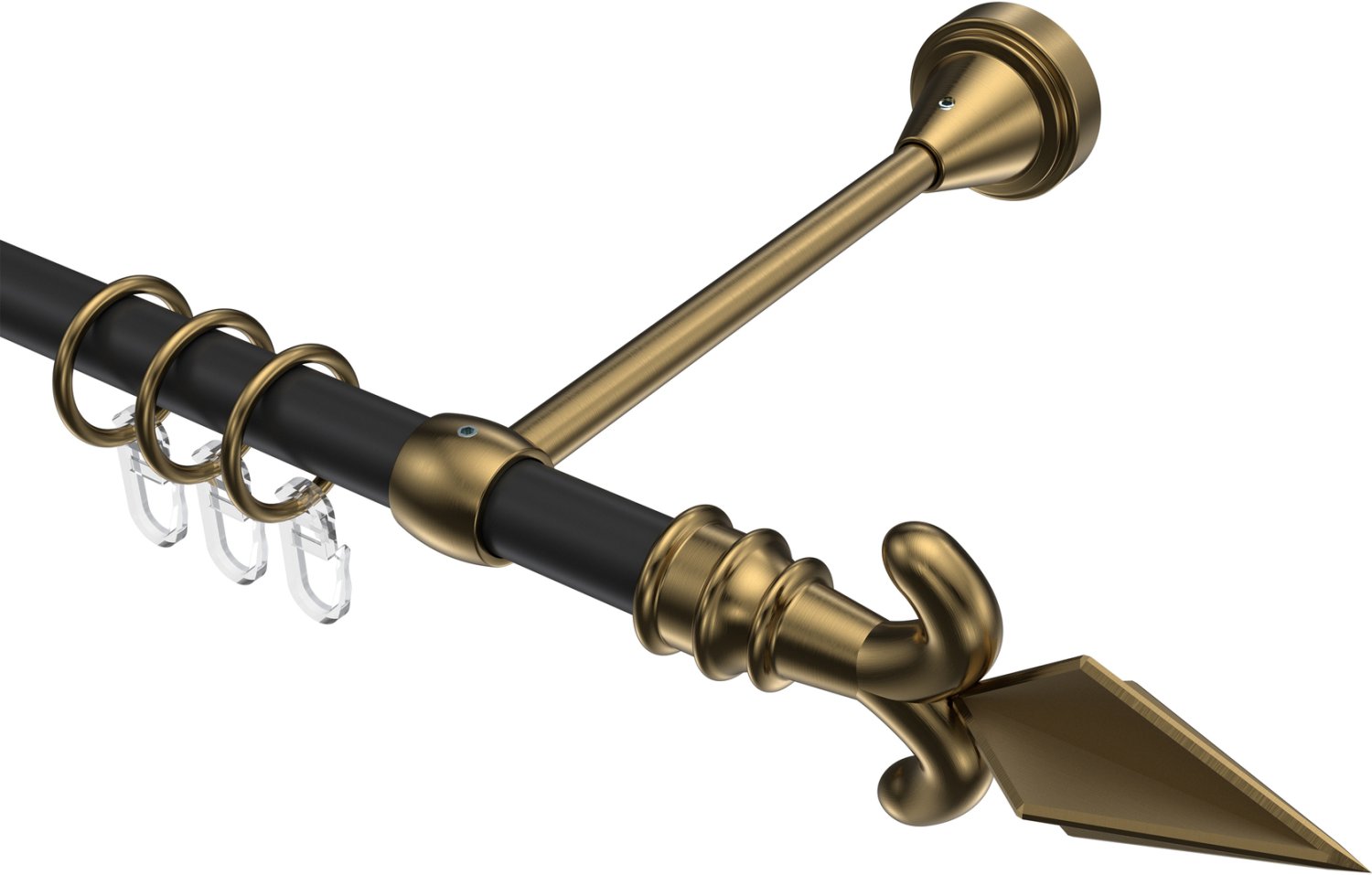 Gardinenstangen aus Metall in 16 mm Ø, 1-läufig, Modell PRIMUS - Matteo Schwarz / Messing Antik