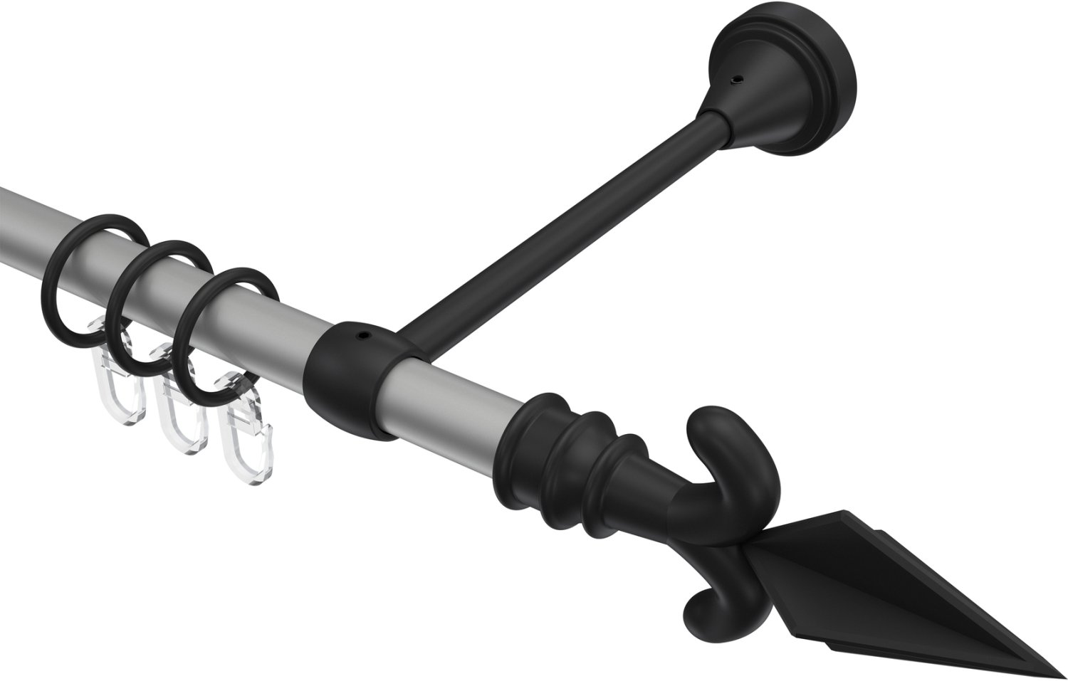 Gardinenstangen aus Metall in 16 mm Ø, 1-läufig, Modell PRIMUS - Matteo Silbergrau / Schwarz