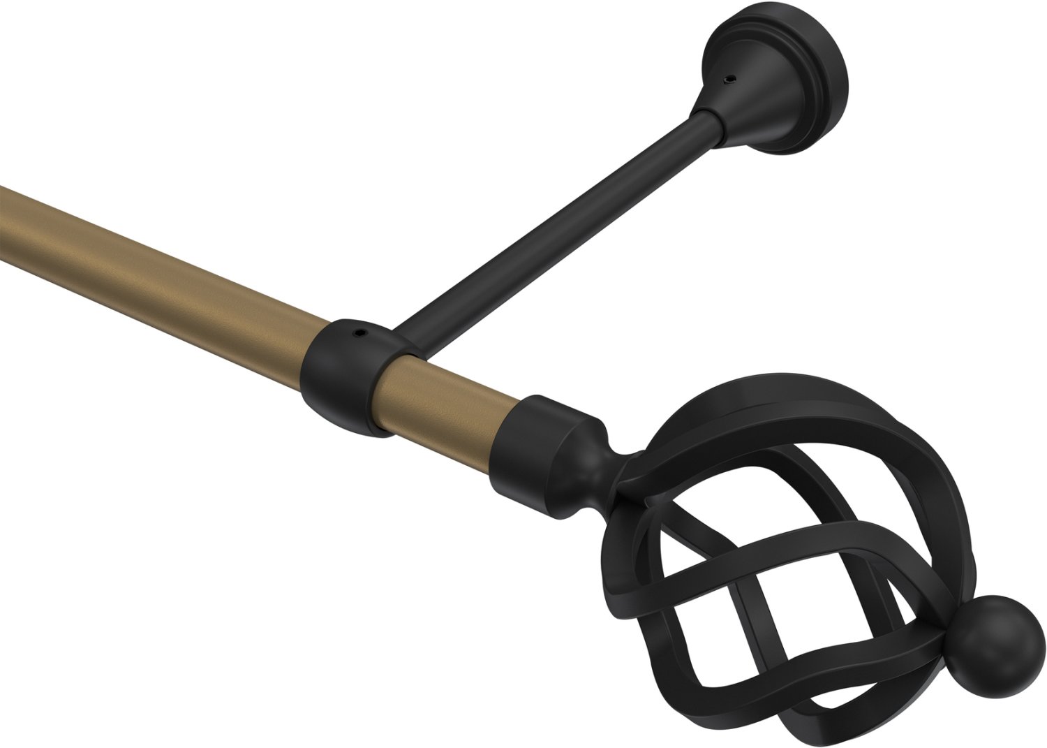 Gardinenstangen aus Metall in 16 mm Ø, 1-läufig, Modell PRIMUS - Paolo Gold matt / Schwarz (ohne Ringe)