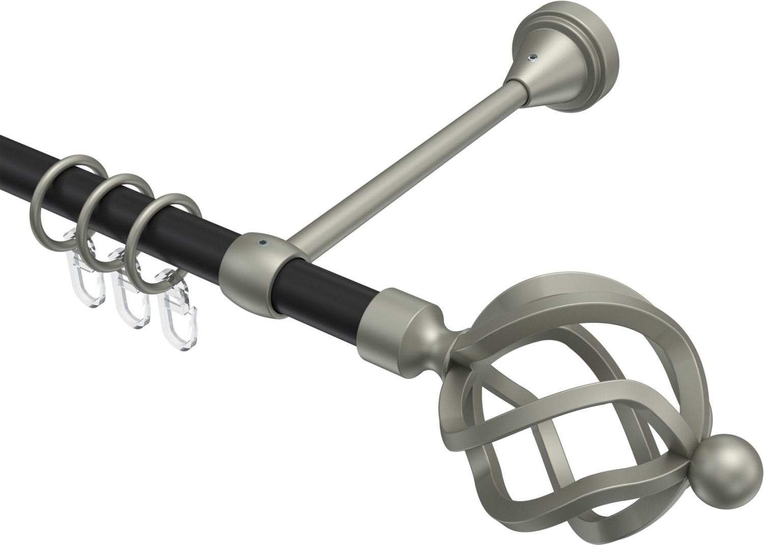 Gardinenstangen aus Metall in 16 mm Ø, 1-läufig, Modell PRIMUS - Paolo Schwarz / Chrom matt
