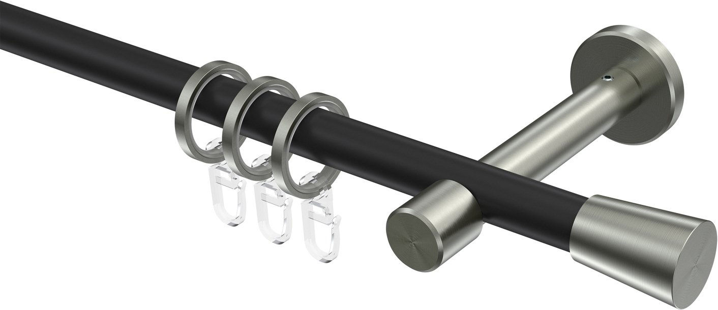 Gardinenstangen aus Metall in 16 mm Ø, 1-läufig, Modell SINUX - Carelli Schwarz / Edelstahl-Optik