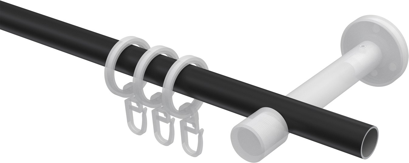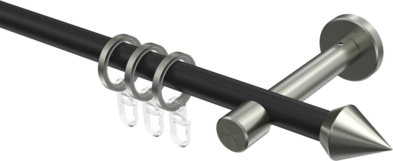 Gardinenstangen aus Metall in 16 mm Ø, 1-läufig, Modell SINUX - Castello Schwarz / Edelstahl-Optik