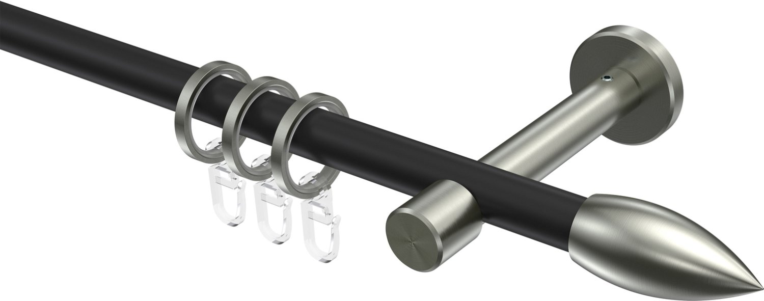 Gardinenstangen aus Metall in 16 mm Ø, 1-läufig, Modell SINUX - Poveda Schwarz / Edelstahl-Optik