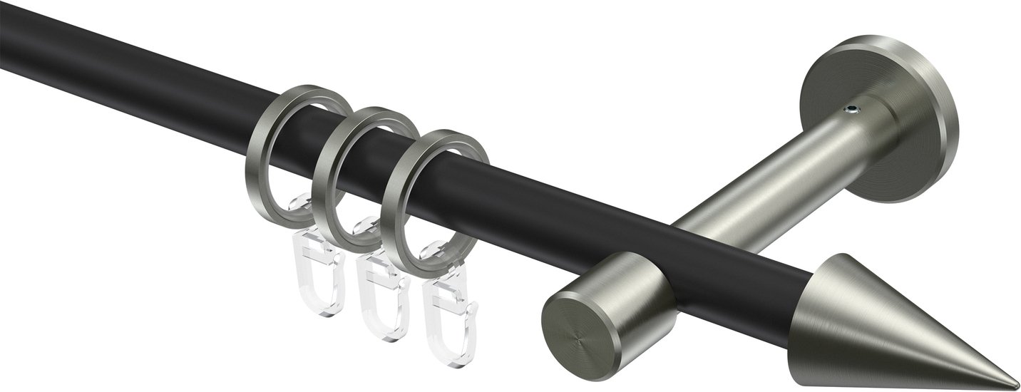 Gardinenstangen aus Metall in 16 mm Ø, 1-läufig, Modell SINUX - Scarano Schwarz / Edelstahl-Optik