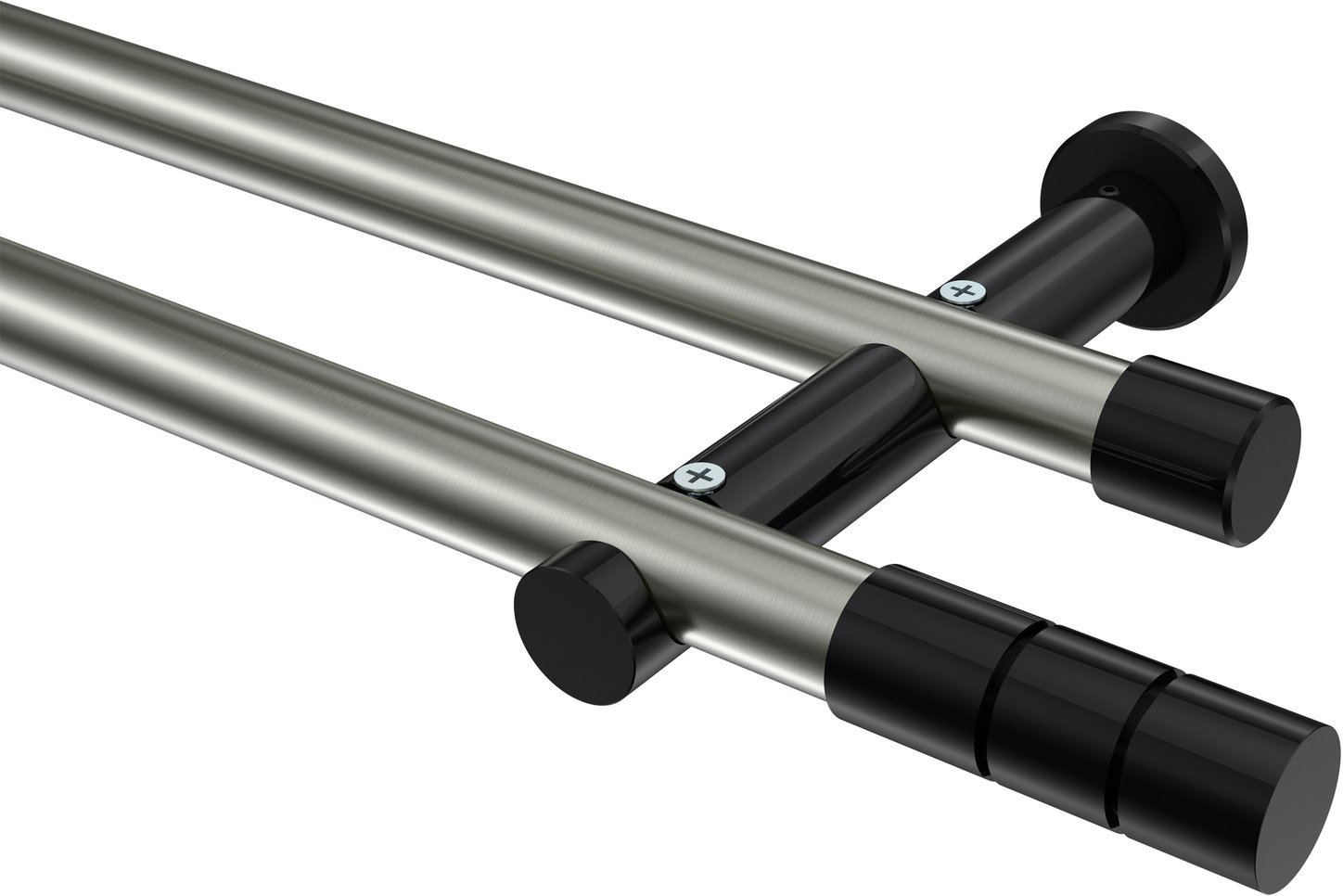 Informationen zu Gardinenstange Metall 20 mm Ø 2-läufig PLATON - Elanto Edelstahl-Optik / Schwarz (ohne Ringe):