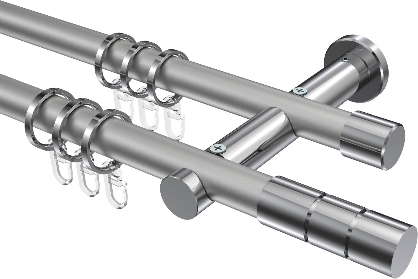 Gardinenstangen aus Metall in 20 mm Ø, 2-läufig, Modell PLATON - Elanto Silbergrau / Chrom
