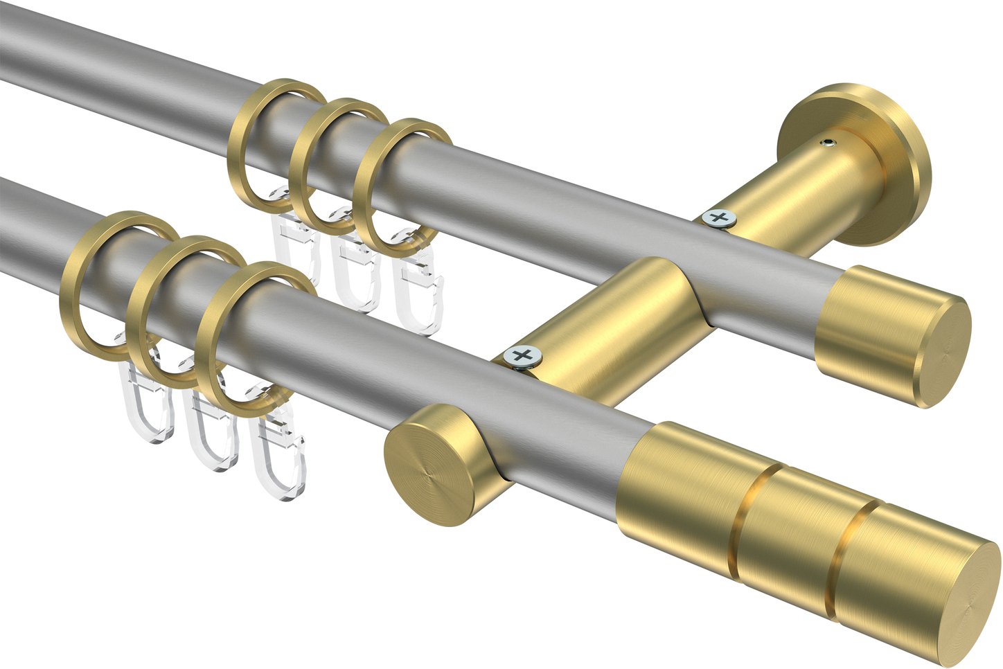 Informationen zu Gardinenstange Metall 20 mm Ø 2-läufig PLATON - Elanto Silbergrau / Messing-Optik: