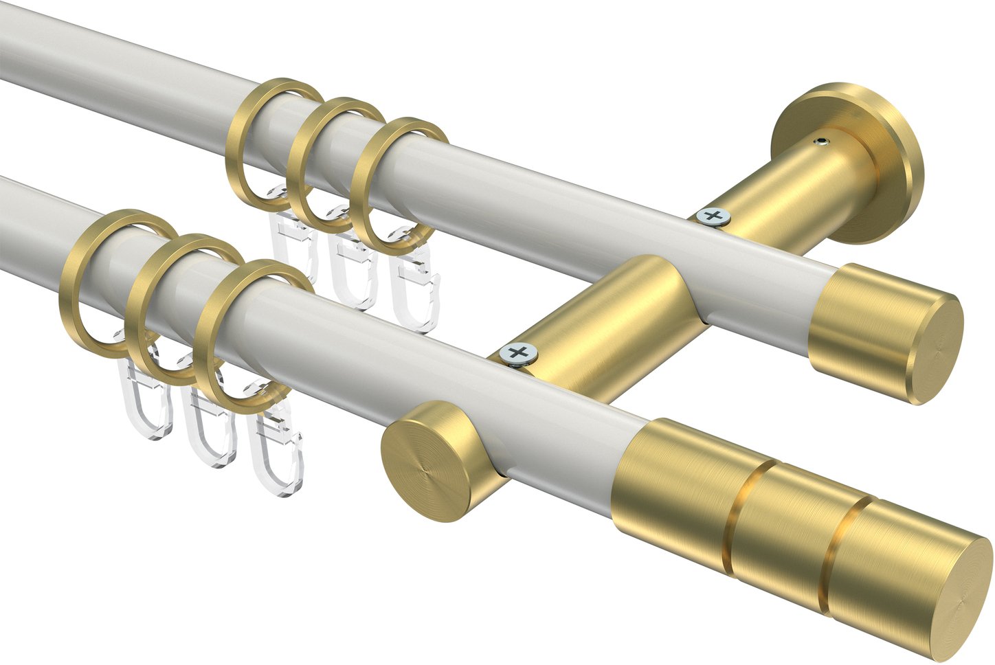 Gardinenstangen aus Metall in 20 mm Ø, 2-läufig, Modell PLATON - Elanto Weiß / Messing-Optik
