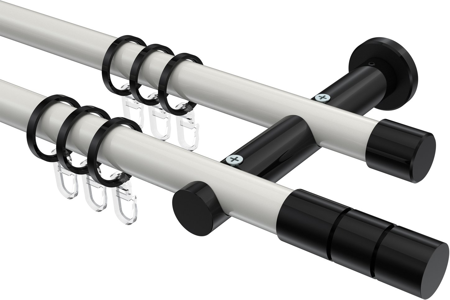 Gardinenstangen aus Metall in 20 mm Ø, 2-läufig, Modell PLATON - Elanto Weiß / Schwarz