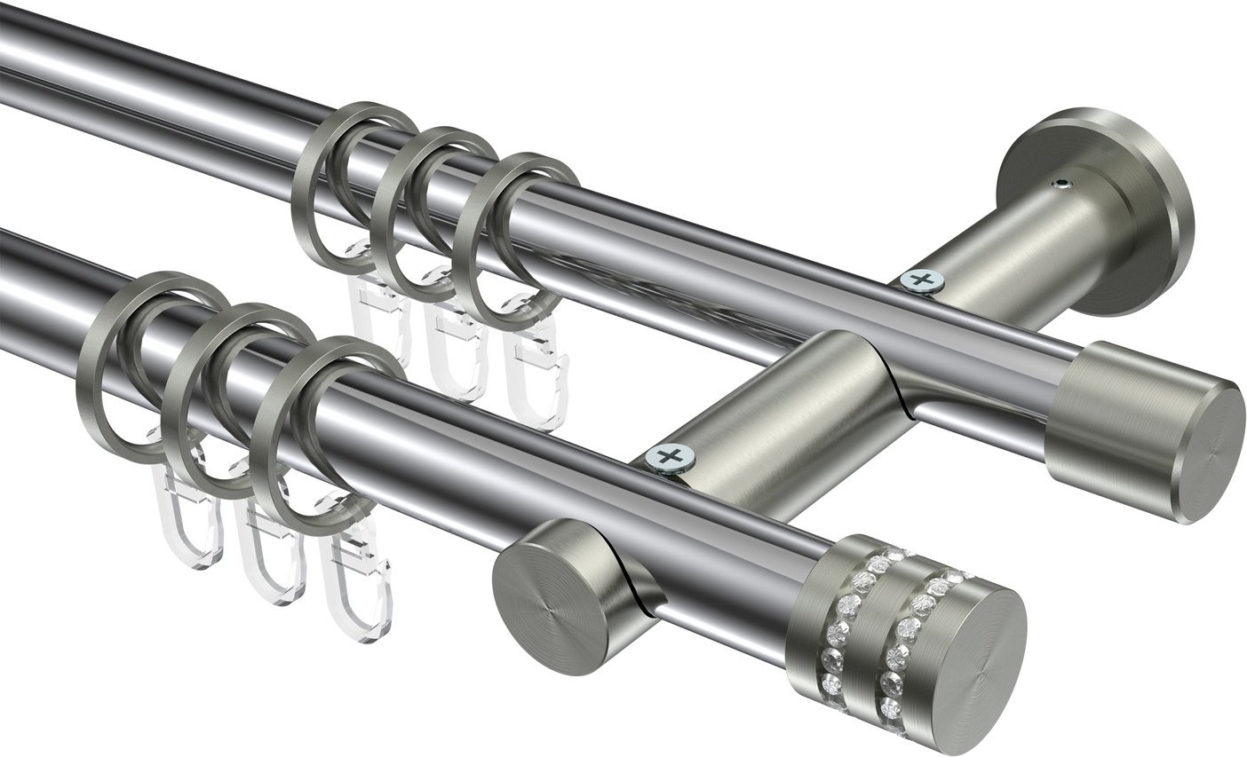 Gardinenstangen aus Metall in 20 mm Ø, 2-läufig, Modell PLATON - Estana Chrom / Edelstahl-Optik