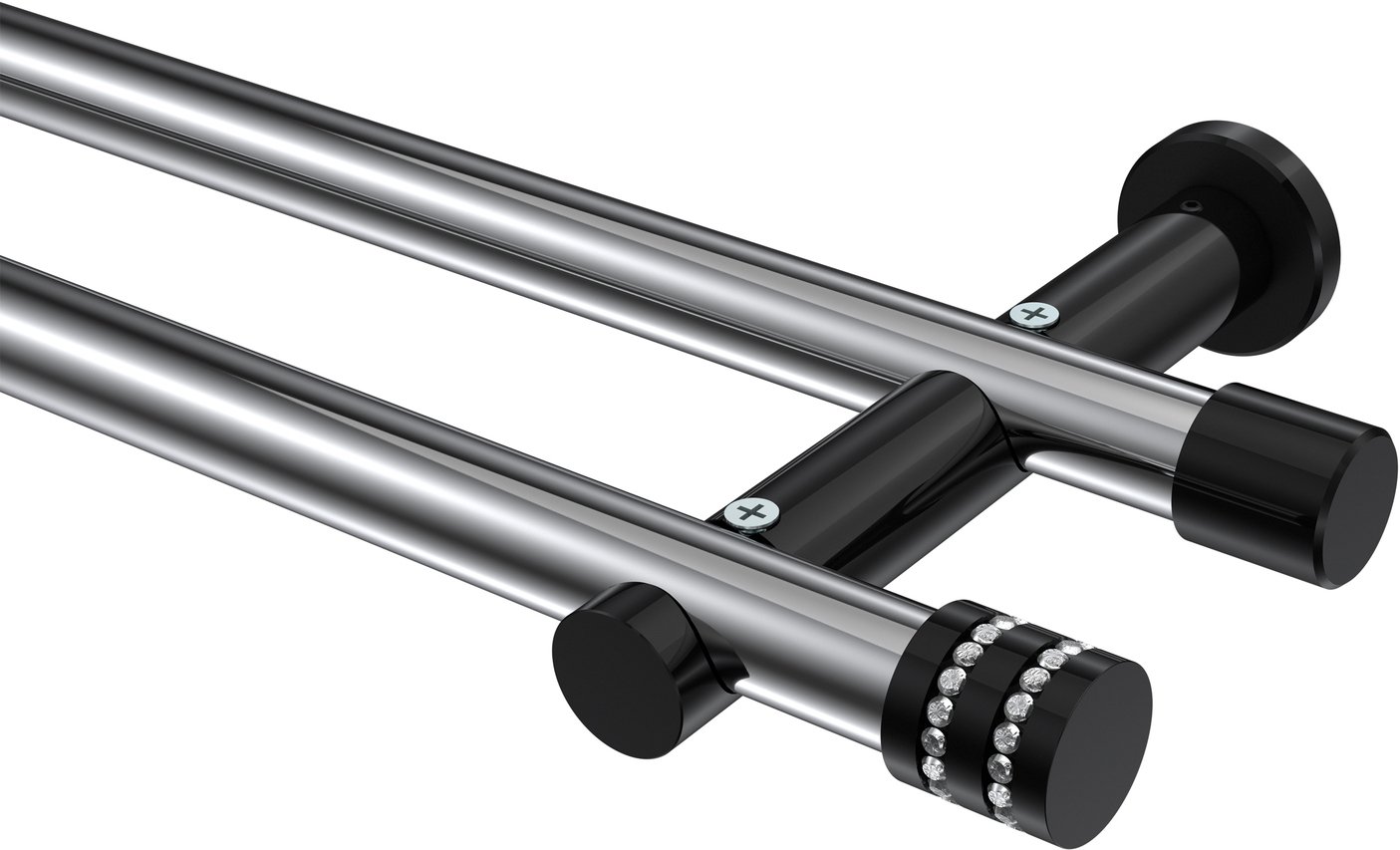 Informationen zu Gardinenstange Metall 20 mm Ø 2-läufig PLATON - Estana Chrom / Schwarz (ohne Ringe):