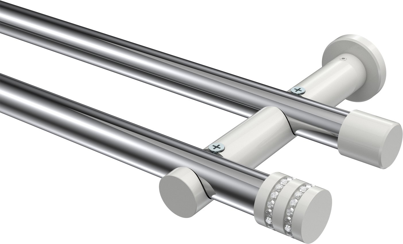 Gardinenstangen aus Metall in 20 mm Ø, 2-läufig, Modell PLATON - Estana Chrom / Weiß (ohne Ringe)
