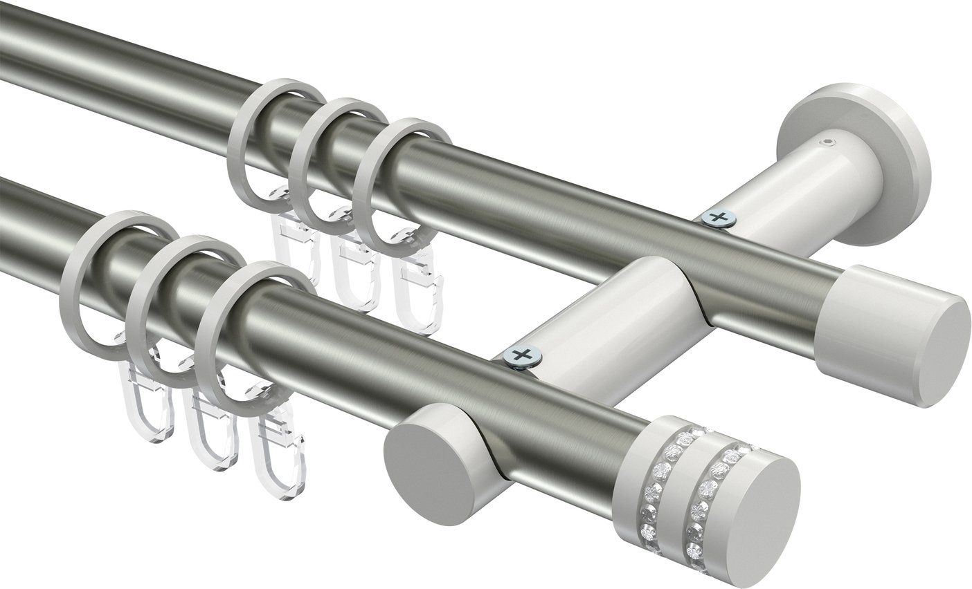 Informationen zu Gardinenstange Metall 20 mm Ø 2-läufig PLATON - Estana Edelstahl-Optik / Weiß: