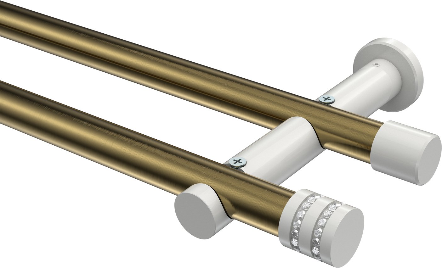 Informationen zu Gardinenstange Metall 20 mm Ø 2-läufig PLATON - Estana Messing Antik / Weiß (ohne Ringe):