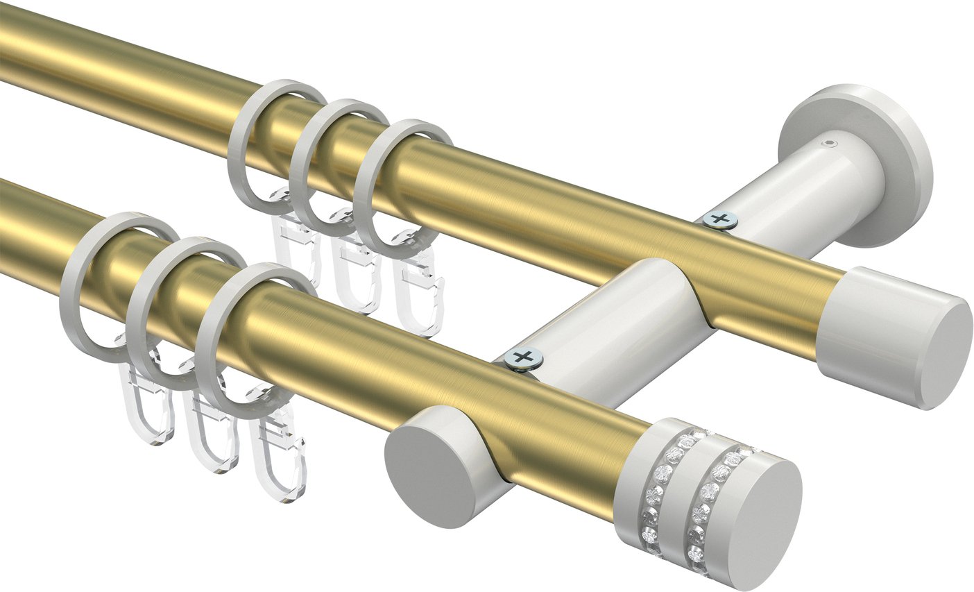 Gardinenstangen aus Metall in 20 mm Ø, 2-läufig, Modell PLATON - Estana Messing-Optik / Weiß