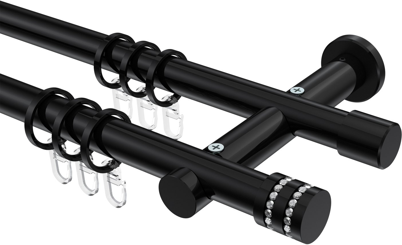 Gardinenstangen aus Metall in 20 mm Ø, 2-läufig, Modell PLATON - Estana Schwarz