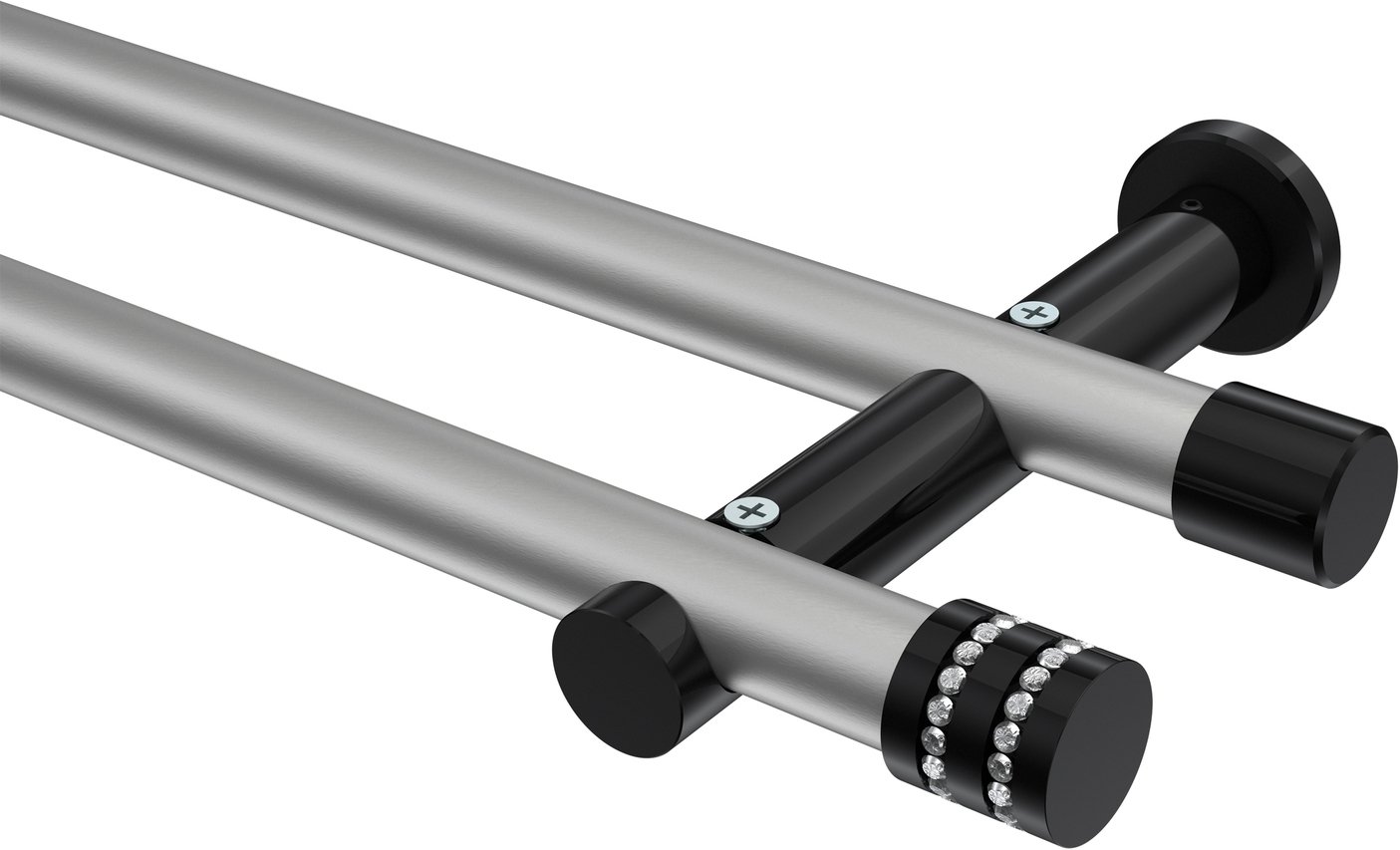 Informationen zu Gardinenstange Metall 20 mm Ø 2-läufig PLATON - Estana Silbergrau / Schwarz (ohne Ringe):