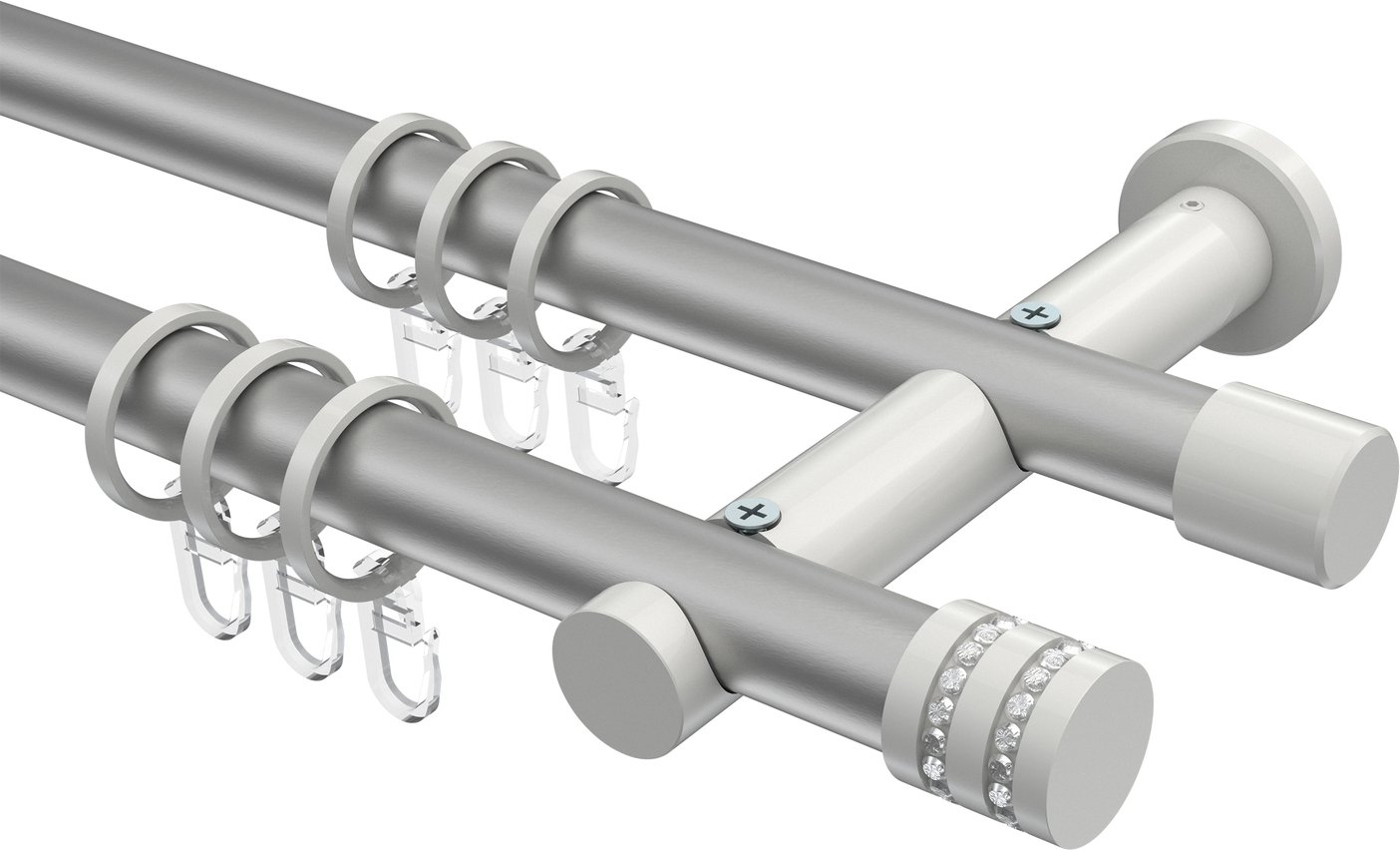 Informationen zu Gardinenstange Metall 20 mm Ø 2-läufig PLATON - Estana Silbergrau / Weiß: