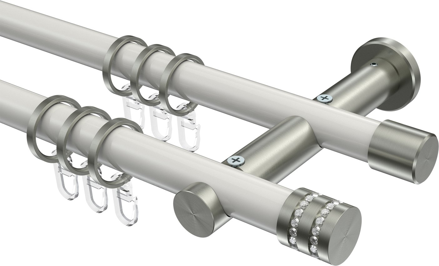 Informationen zu Gardinenstange Metall 20 mm Ø 2-läufig PLATON - Estana Weiß / Edelstahl-Optik: