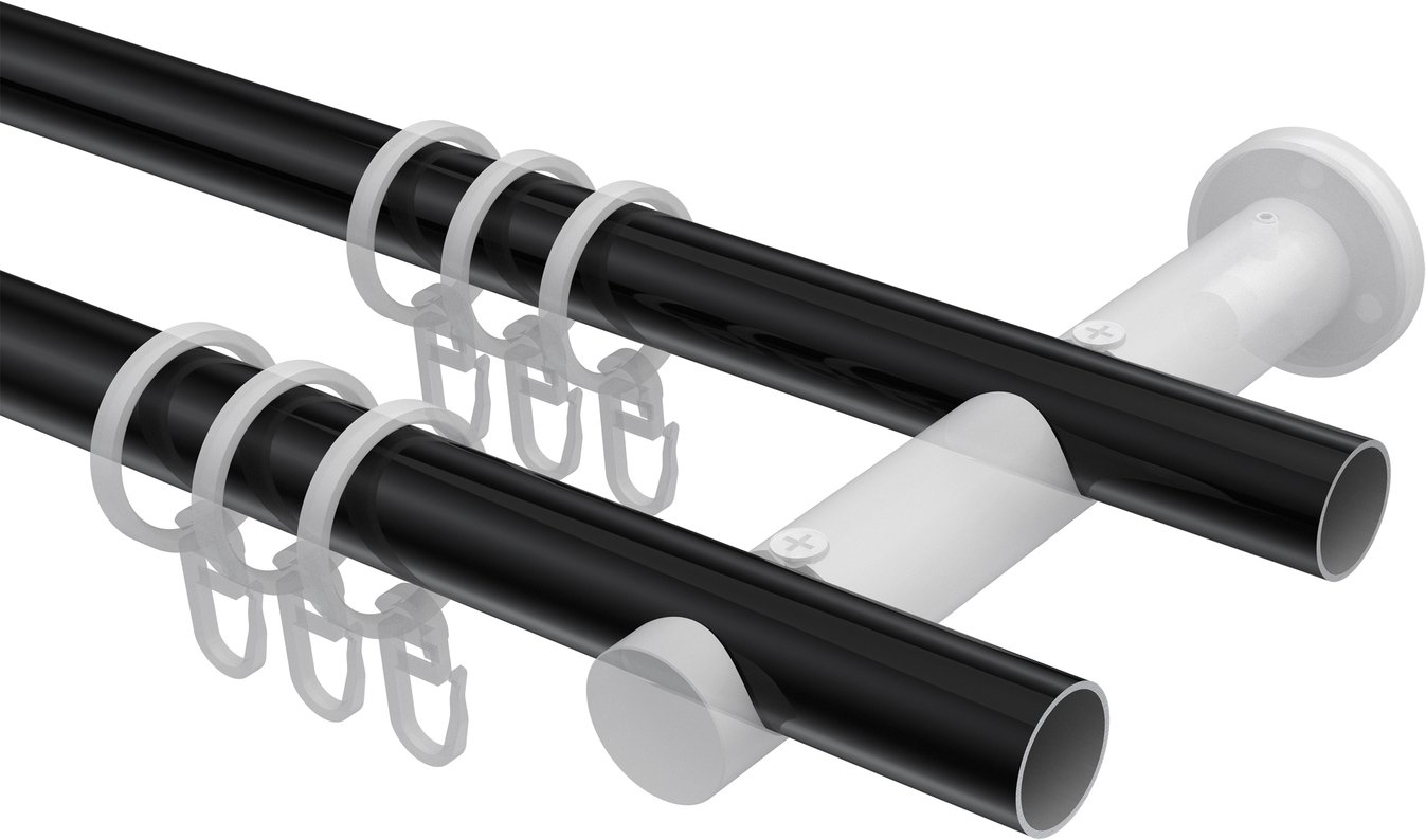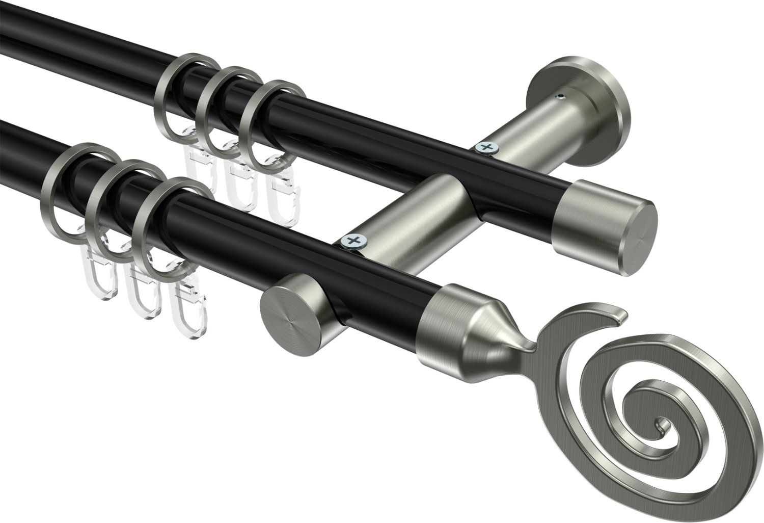 Gardinenstangen aus Metall in 20 mm Ø, 2-läufig, Modell PLATON - Galaxa Schwarz / Edelstahl-Optik