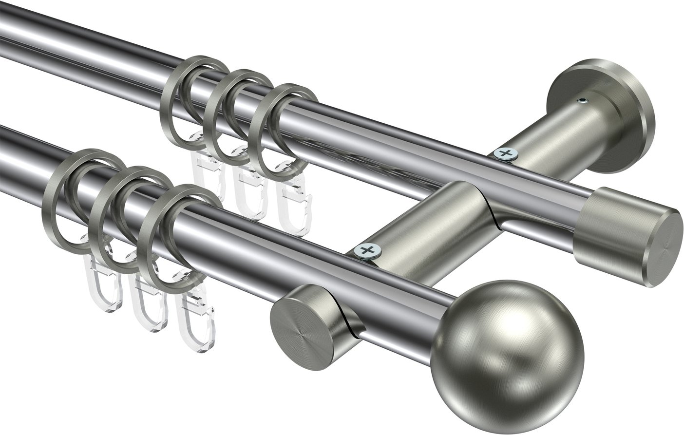 Gardinenstangen aus Metall in 20 mm Ø, 2-läufig, Modell PLATON - Luino Chrom / Edelstahl-Optik