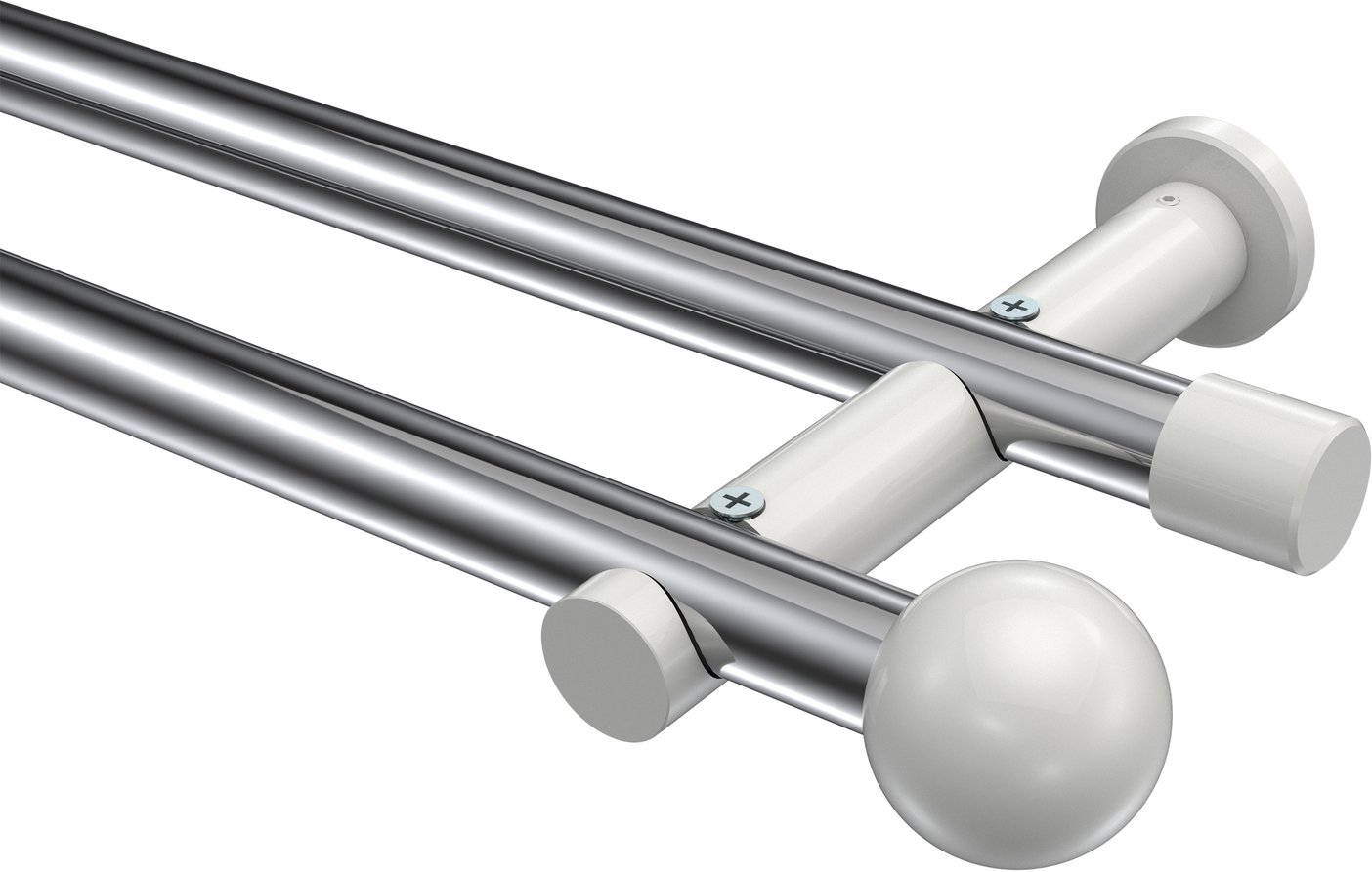 Informationen zu Gardinenstange Metall 20 mm Ø 2-läufig PLATON - Luino Chrom / Weiß (ohne Ringe):