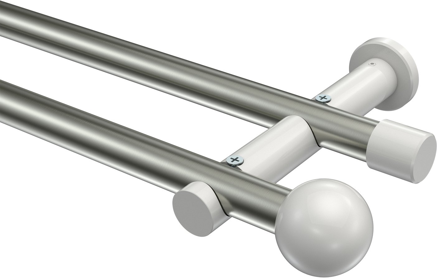 Informationen zu Gardinenstange Metall 20 mm Ø 2-läufig PLATON - Luino Edelstahl-Optik / Weiß (ohne Ringe):
