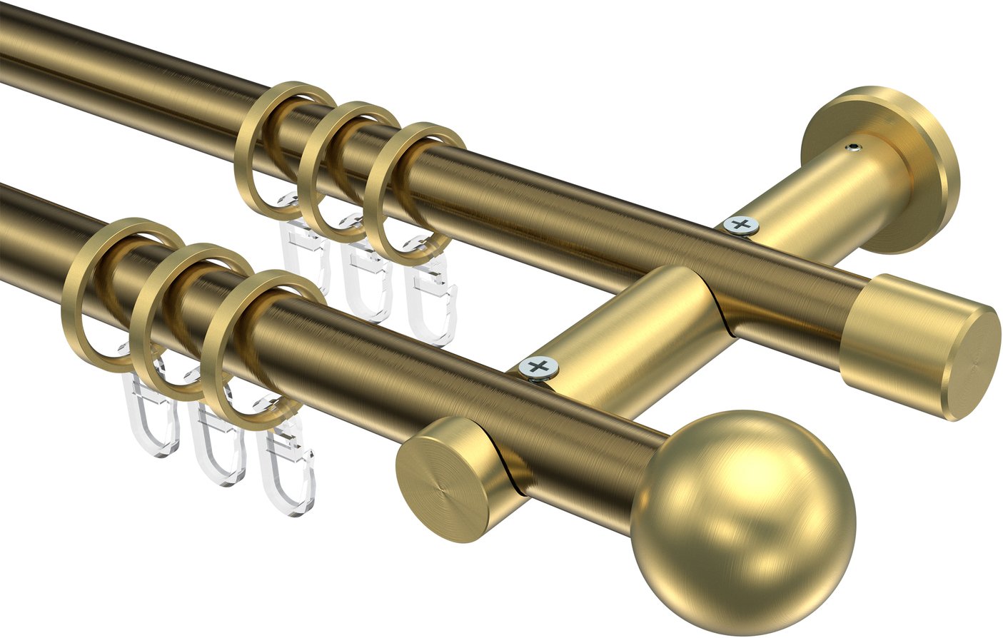 Gardinenstangen aus Metall in 20 mm Ø, 2-läufig, Modell PLATON - Luino Messing Antik / Messing-Optik