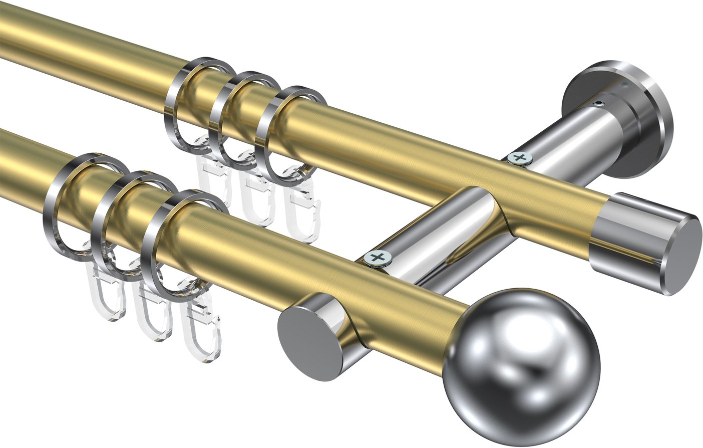 Gardinenstangen aus Metall in 20 mm Ø, 2-läufig, Modell PLATON - Luino Messing-Optik / Chrom