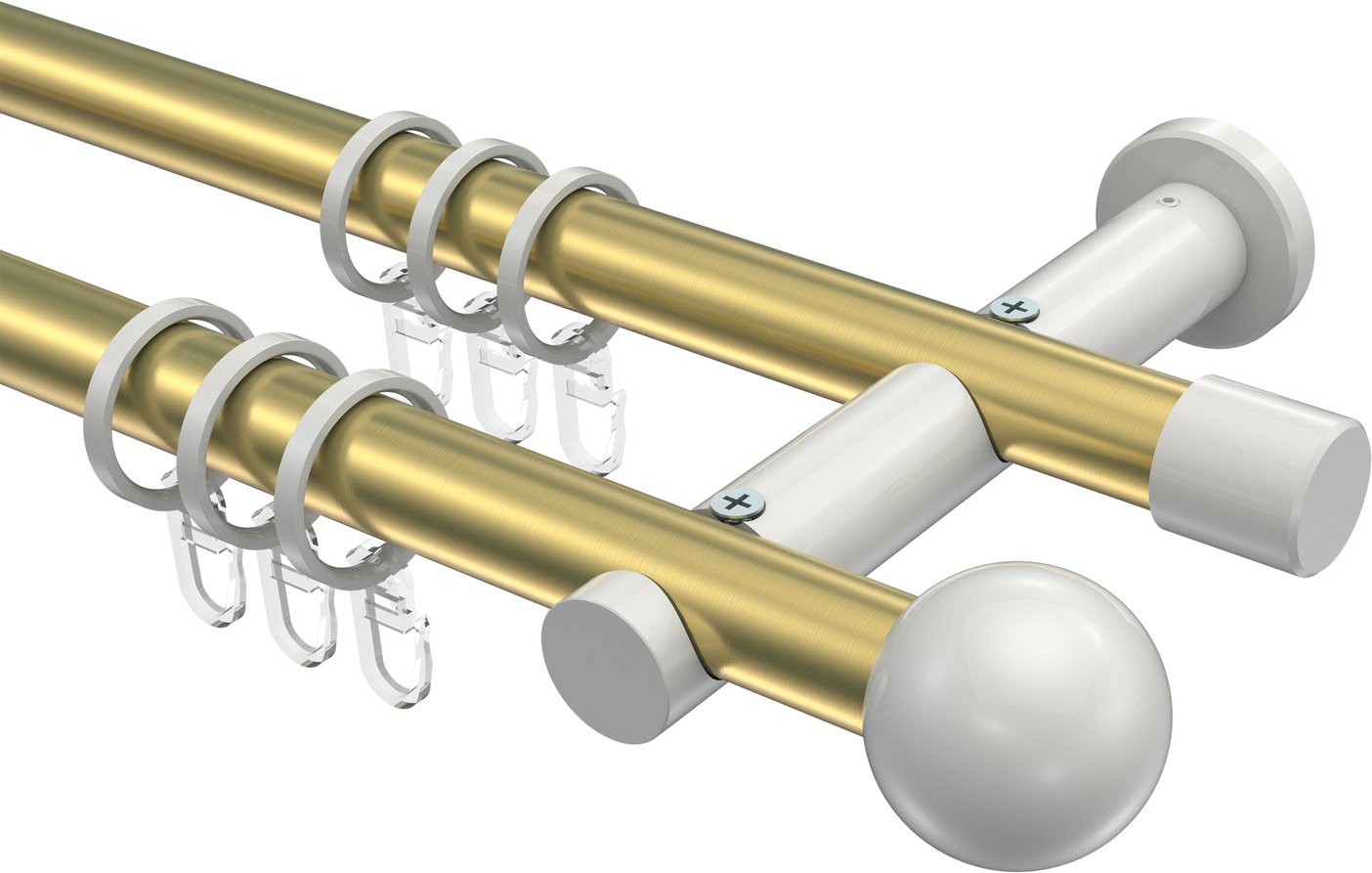 Informationen zu Gardinenstange Metall 20 mm Ø 2-läufig PLATON - Luino Messing-Optik / Weiß: