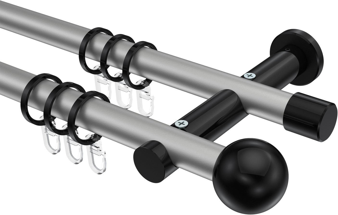 Gardinenstangen aus Metall in 20 mm Ø, 2-läufig, Modell PLATON - Luino Silbergrau / Schwarz