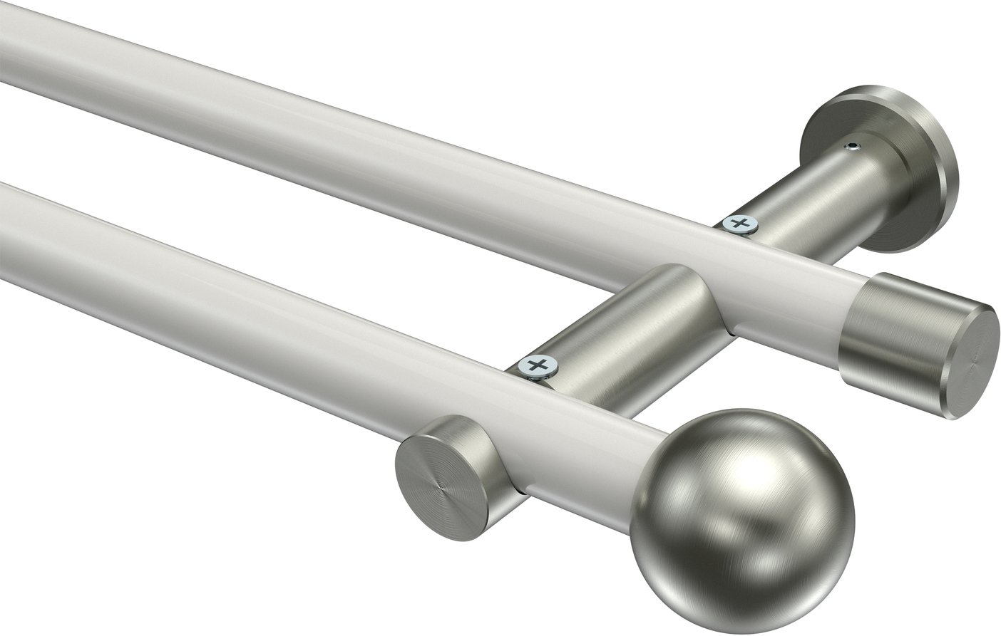 Informationen zu Gardinenstange Metall 20 mm Ø 2-läufig PLATON - Luino Weiß / Edelstahl-Optik (ohne Ringe):