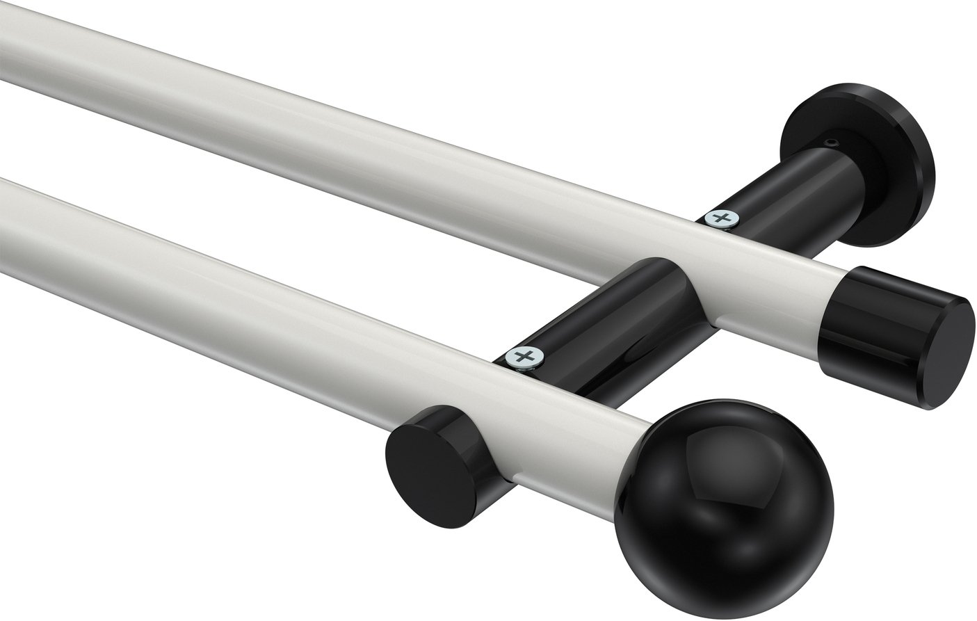 Gardinenstangen aus Metall in 20 mm Ø, 2-läufig, Modell PLATON - Luino Weiß / Schwarz (ohne Ringe)