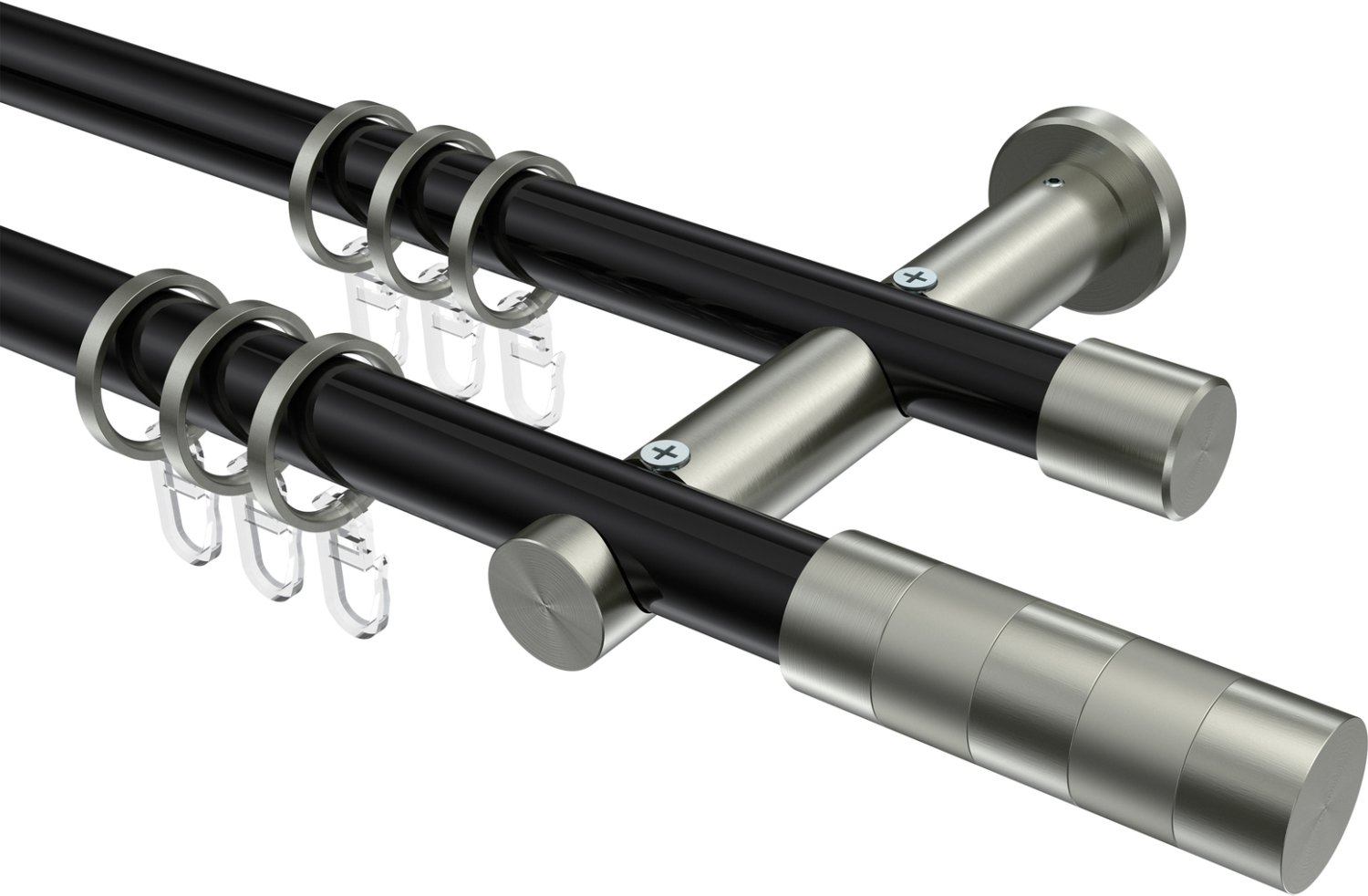 Gardinenstangen aus Metall in 20 mm Ø, 2-läufig, Modell PLATON - Mavell Schwarz / Edelstahl-Optik