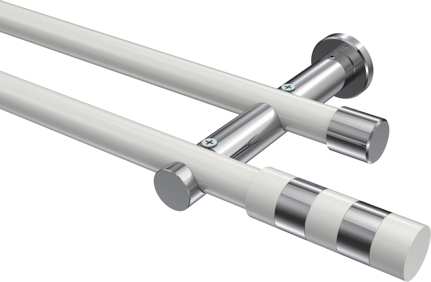 Gardinenstangen aus Metall in 20 mm Ø, 2-läufig, Modell PLATON - Mavell Weiß / Chrom (ohne Ringe)
