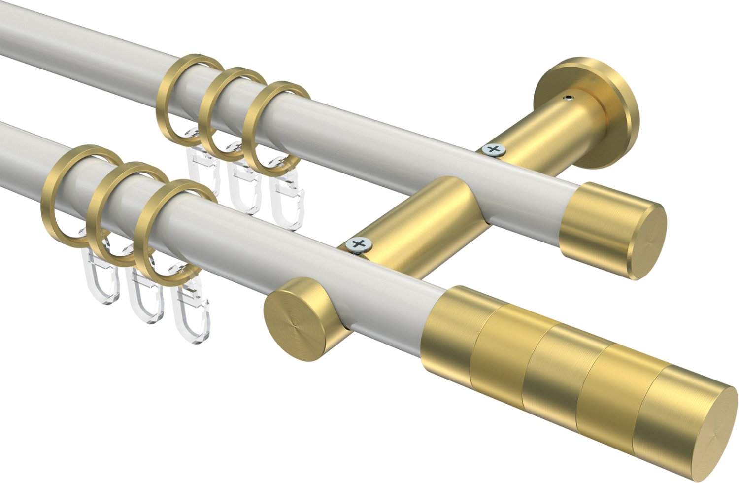 Gardinenstangen aus Metall in 20 mm Ø, 2-läufig, Modell PLATON - Mavell Weiß / Messing-Optik