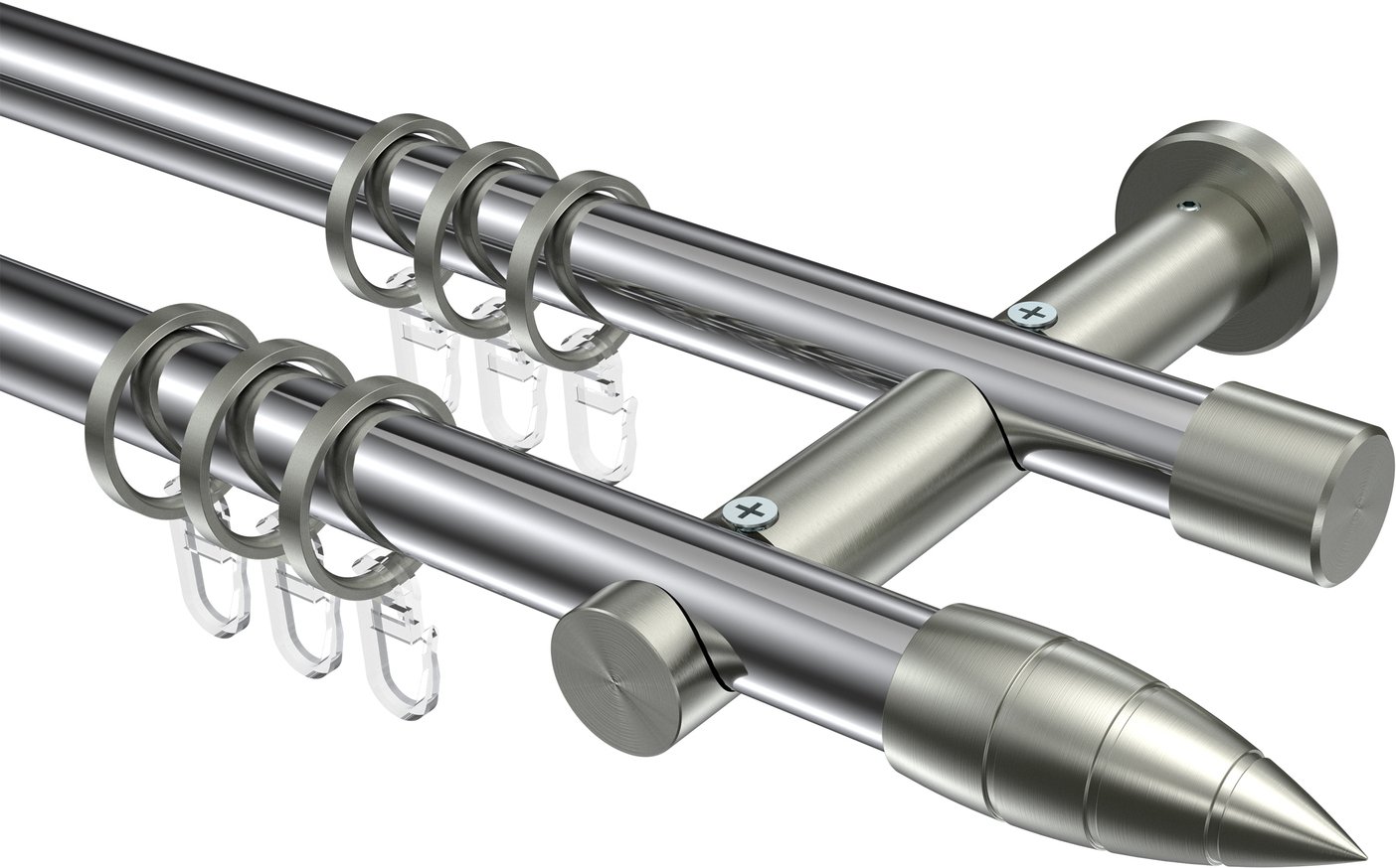 Gardinenstangen aus Metall in 20 mm Ø, 2-läufig, Modell PLATON - Samanto Chrom / Edelstahl-Optik