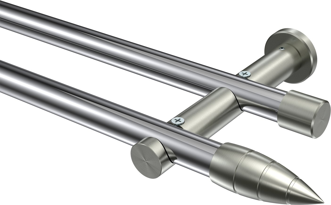 Informationen zu Gardinenstange Metall 20 mm Ø 2-läufig PLATON - Samanto Chrom / Edelstahl-Optik (ohne Ringe):
