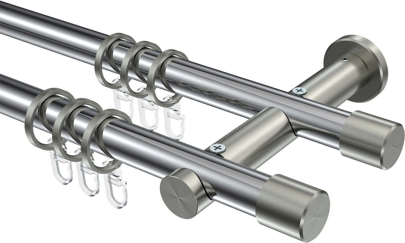 Gardinenstangen aus Metall in 20 mm Ø, 2-läufig, Modell PLATON - Santo Chrom / Edelstahl-Optik