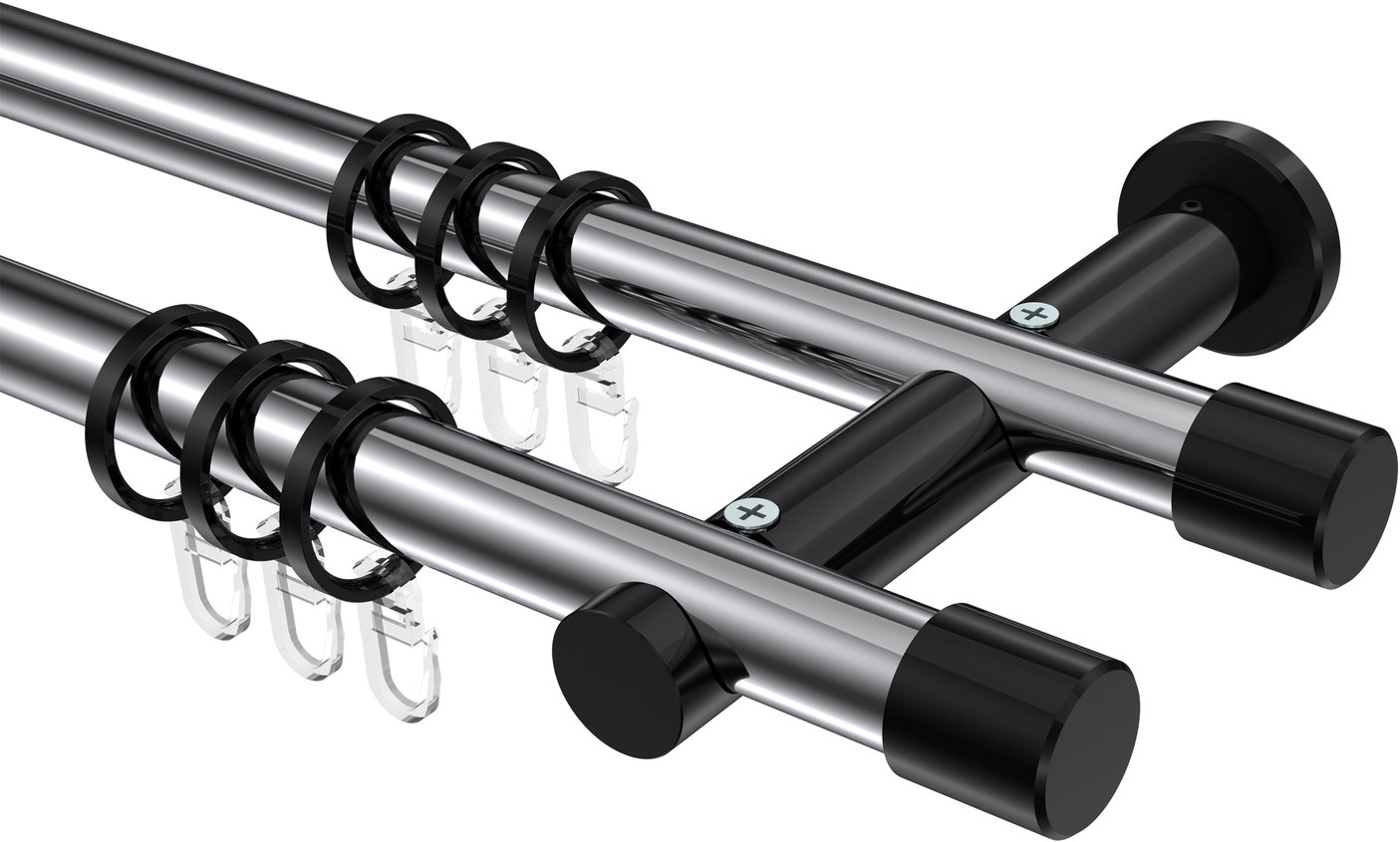 Gardinenstangen aus Metall in 20 mm Ø, 2-läufig, Modell PLATON - Santo Chrom / Schwarz