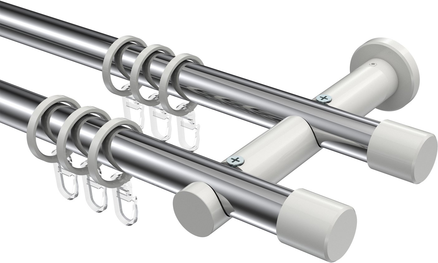 Gardinenstangen aus Metall in 20 mm Ø, 2-läufig, Modell PLATON - Santo Chrom / Weiß