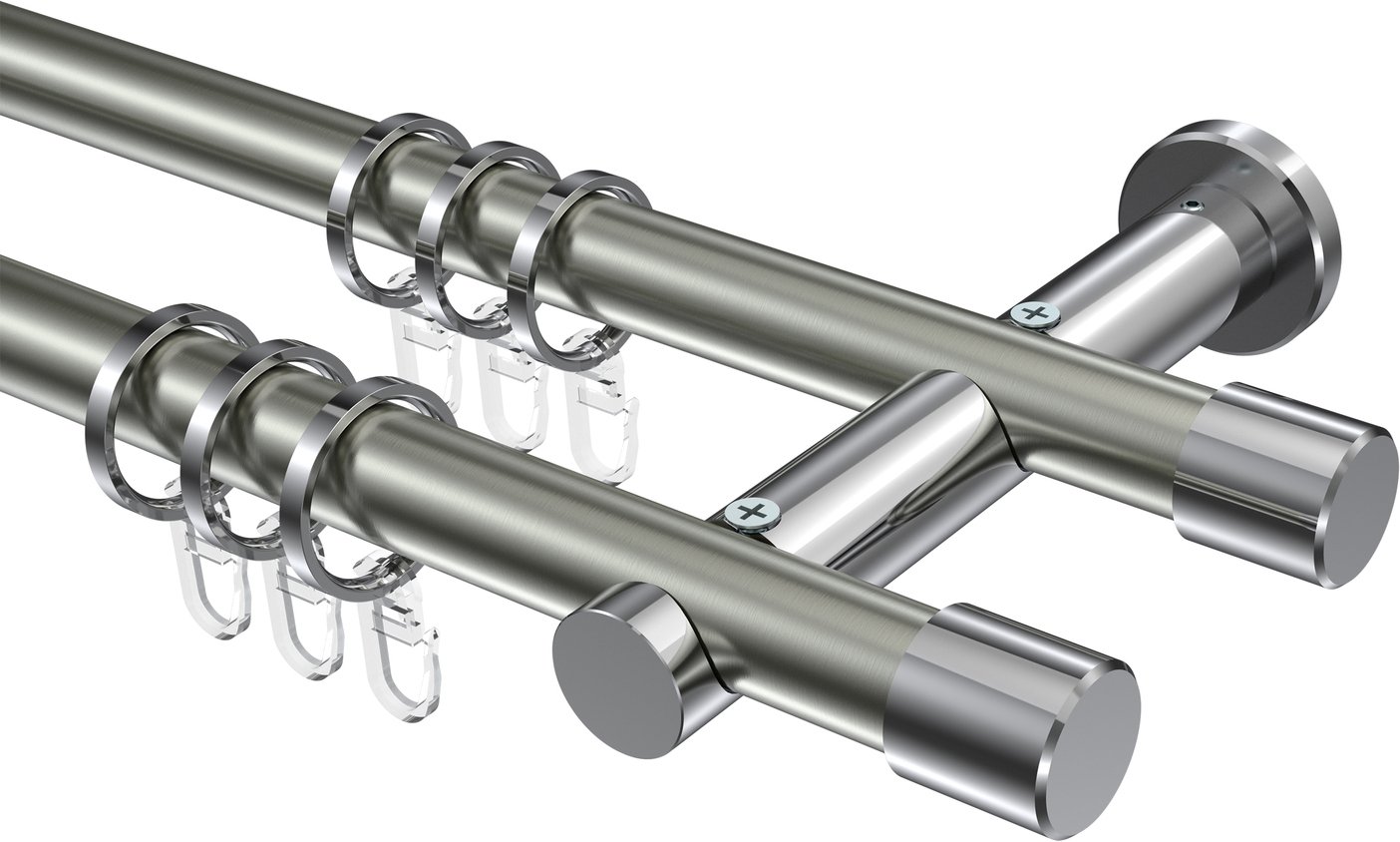 Gardinenstangen aus Metall in 20 mm Ø, 2-läufig, Modell PLATON - Santo Edelstahl-Optik / Chrom