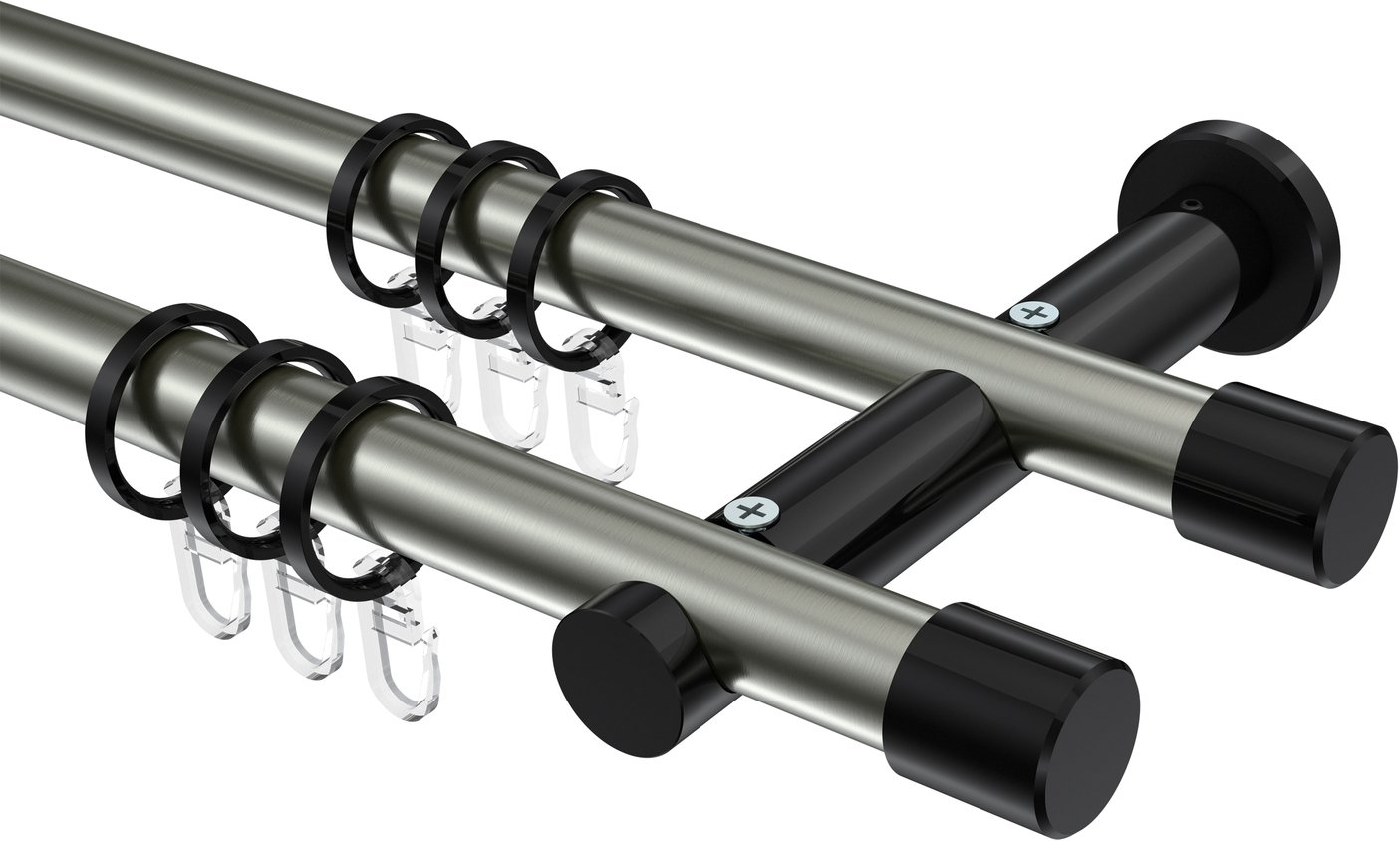 Informationen zu Gardinenstange Metall 20 mm Ø 2-läufig PLATON - Santo Edelstahl-Optik / Schwarz: