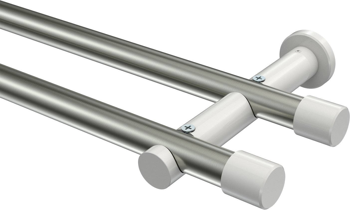 Informationen zu Gardinenstange Metall 20 mm Ø 2-läufig PLATON - Santo Edelstahl-Optik / Weiß (ohne Ringe):
