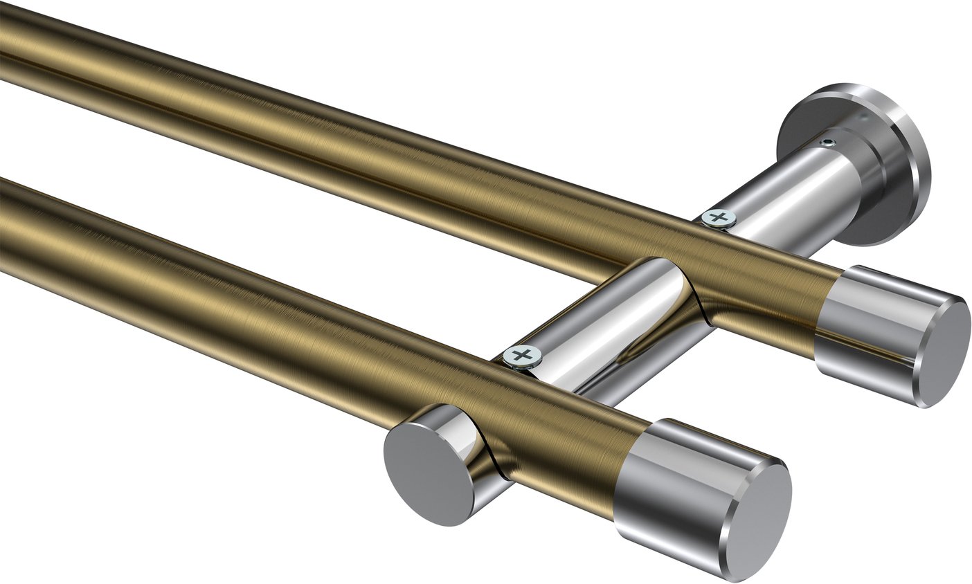 Informationen zu Gardinenstange Metall 20 mm Ø 2-läufig PLATON - Santo Messing Antik / Chrom (ohne Ringe):