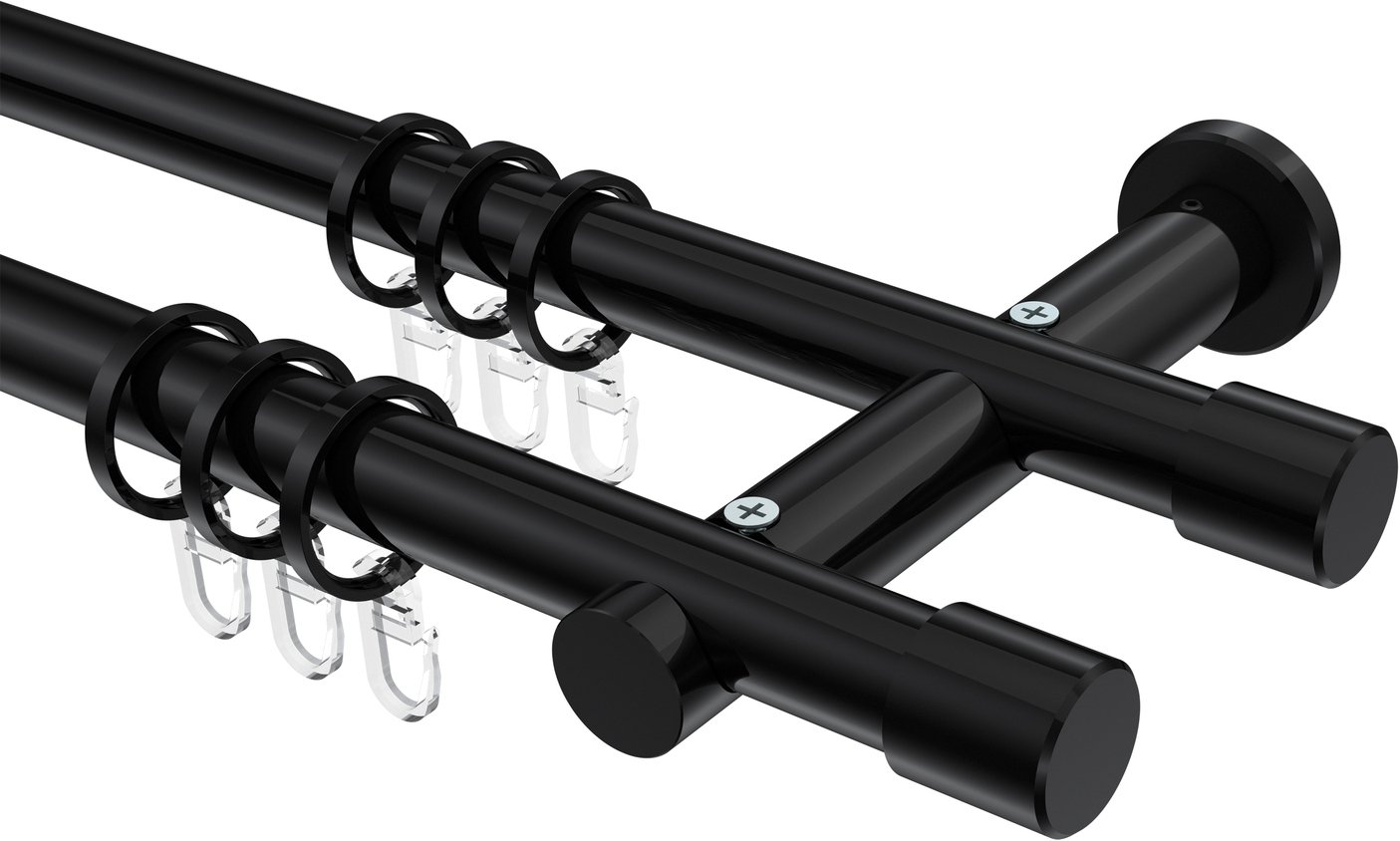 Gardinenstangen aus Metall in 20 mm Ø, 2-läufig, Modell PLATON - Santo Schwarz