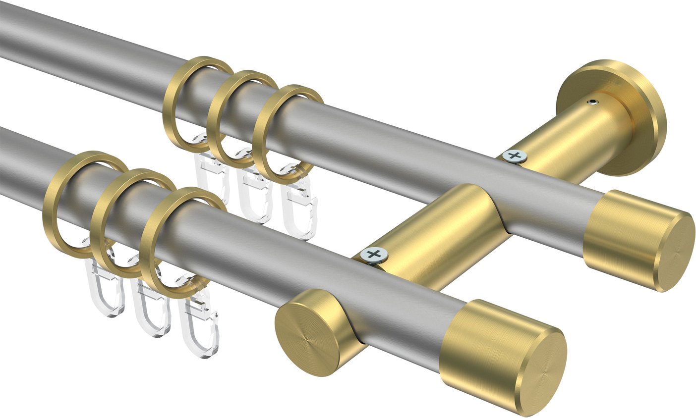 Informationen zu Gardinenstange Metall 20 mm Ø 2-läufig PLATON - Santo Silbergrau / Messing-Optik:
