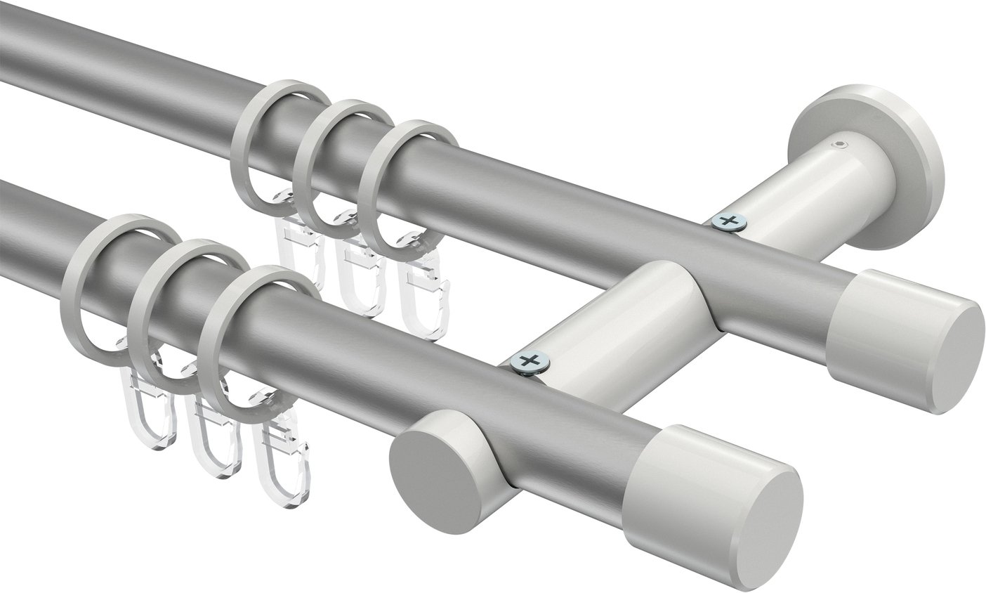 Informationen zu Gardinenstange Metall 20 mm Ø 2-läufig PLATON - Santo Silbergrau / Weiß: